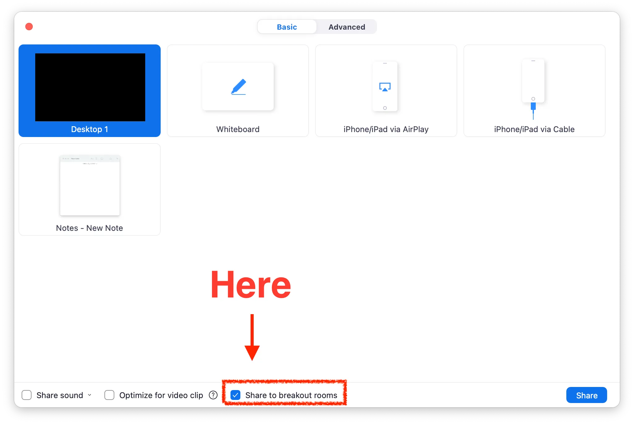 Share your screen with breakout rooms by opening this window: