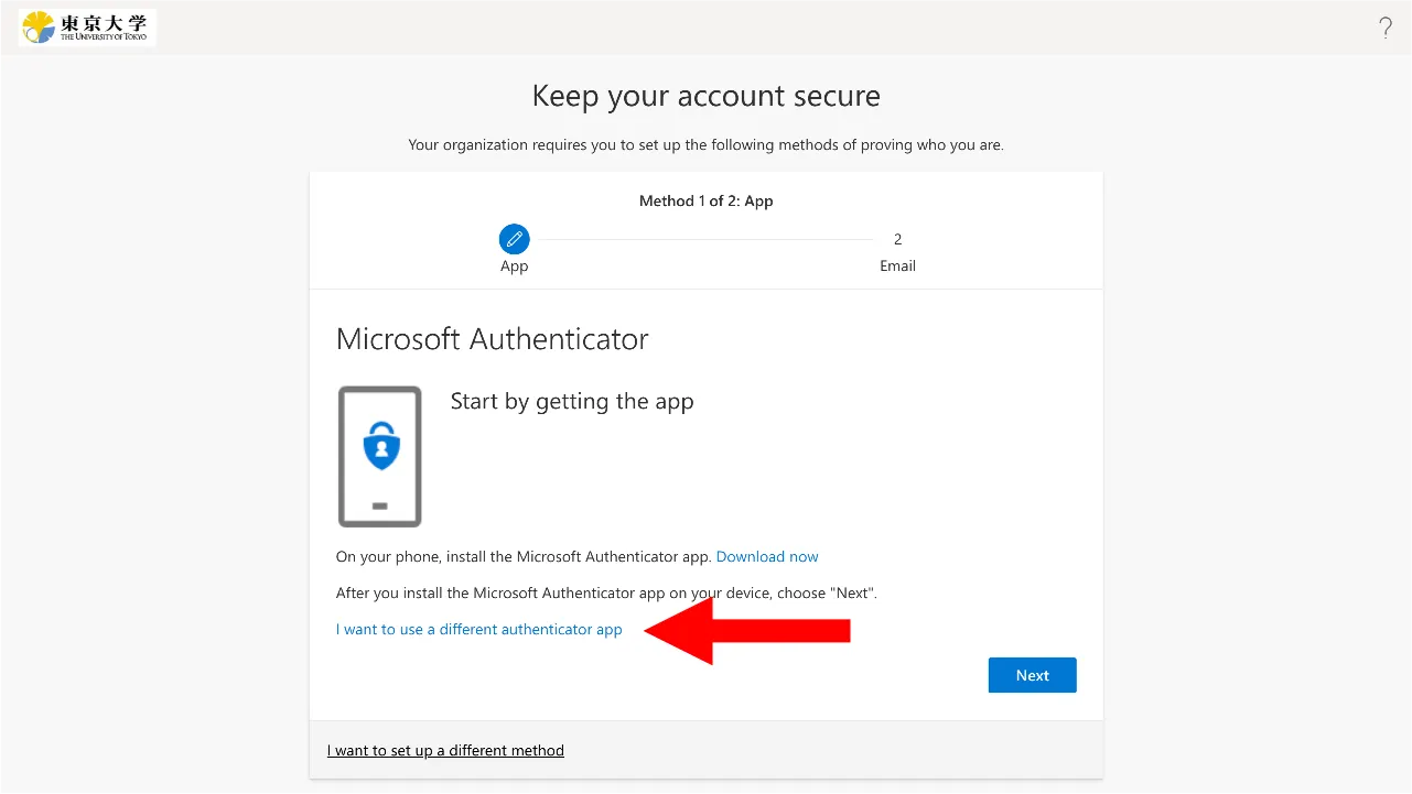 “Microsoft Authenticator” is an MFA authentication application provided by Microsoft. Using this app is convenient since UTokyo Account’s MFA adopts Microsoft’s system. If you have more than one phone, you can register the same authenticator apps on these phones, making them two or more verification methods.
