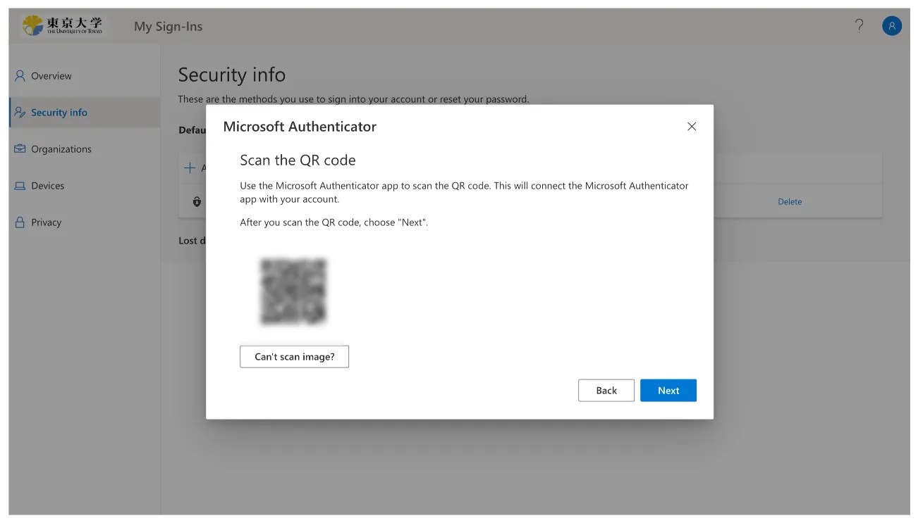“Microsoft Authenticator” is an MFA authentication application provided by Microsoft. Using this app is convenient since UTokyo Account’s MFA adopts Microsoft’s system. If you have more than one phone, you can register the same authenticator apps on these phones, making them two or more verification methods.
