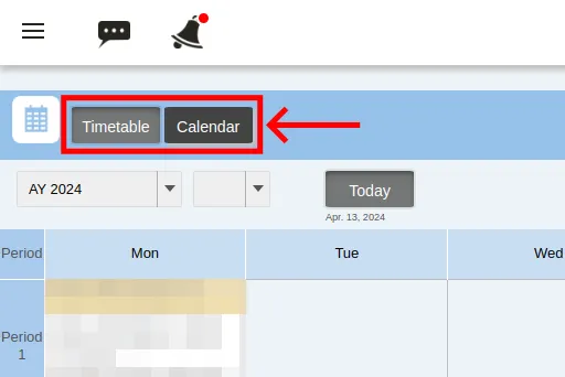 Courses can be displayed in a timetable or calendar format. You can switch between the two using the buttons at the top of the screen.
