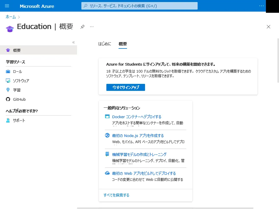 5. 「Microsoft Azure」の画面が表示されたら,「Education」画面の左側にあるメニューから「ソフトウェア」を開いてください.