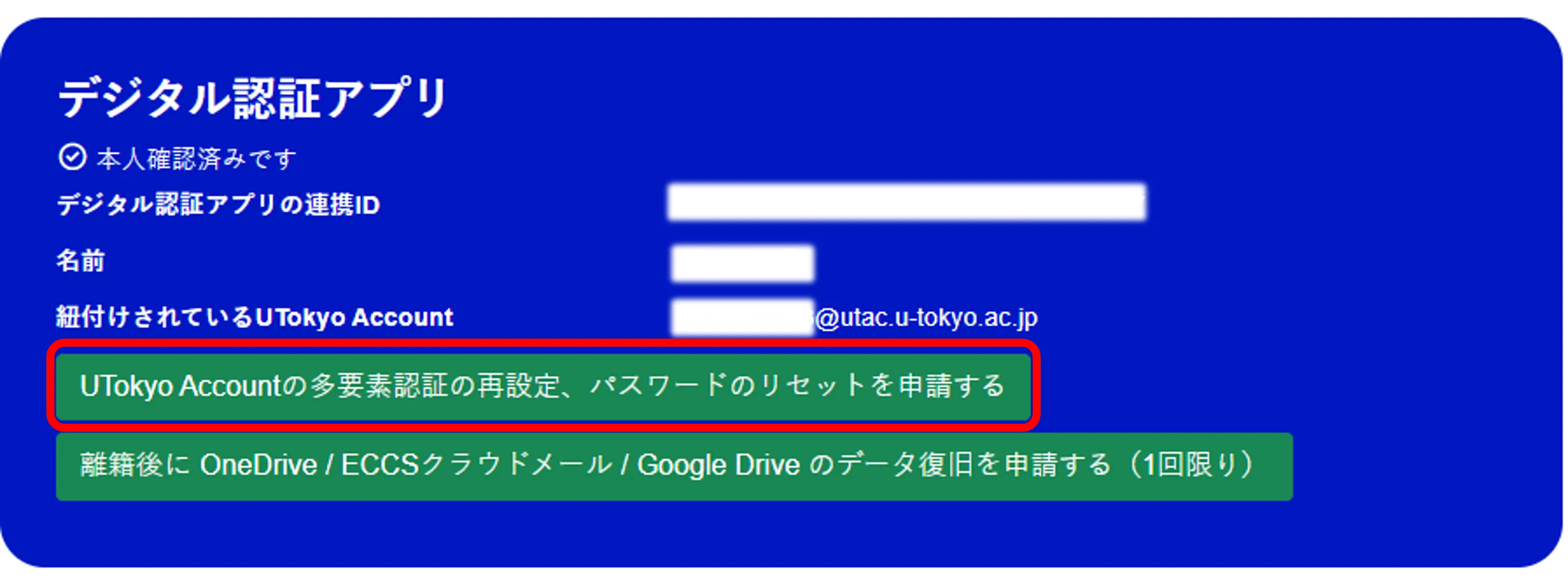 UTokyo Account本人確認サービスを利用してパスワードを再発行する