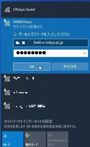 パスワードUTokyo Wi-Fiのパスワードを入力してください