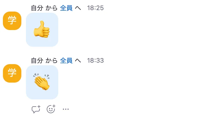 - 送信アイコンを押してください.以下の画像のように絵文字が送信されます.