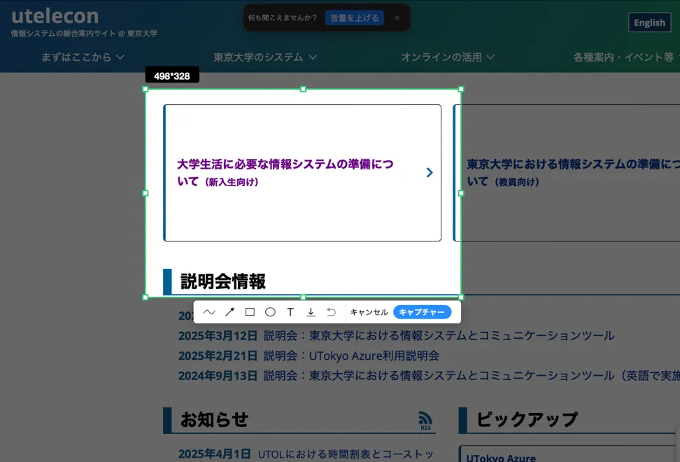 - スクリーンショットを取得するウインドウを選択するか,ドラッグして撮影する範囲を選択してください.