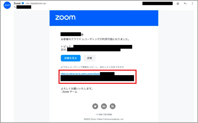 また,「レコーディングを確認する」で紹介したメール通知からも,共有用URLのコピーや共有設定を行うことができます.